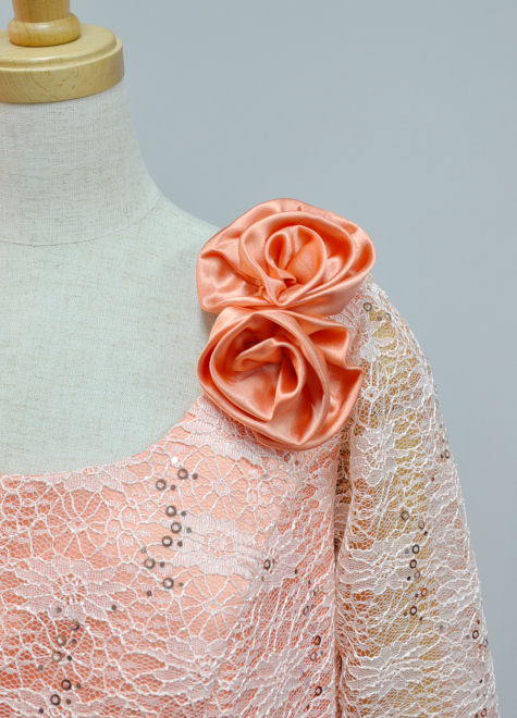 ・生地スバンコールオレンジレース ・2個取り外し可能コーサジュ付き ・肘隠れる袖の長さ ・スムーズに着脱できる様背中にファスナーがあります