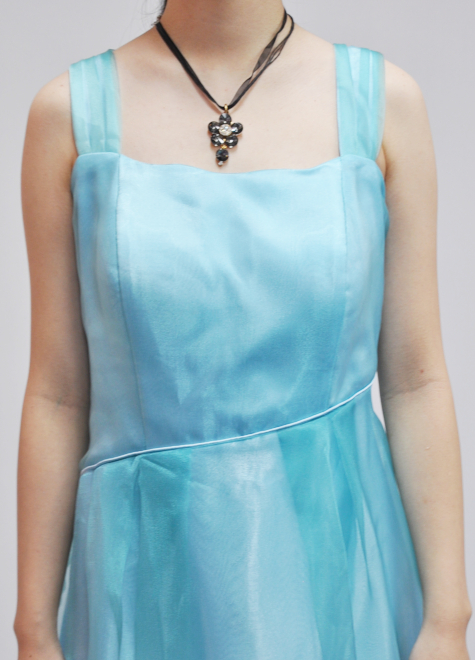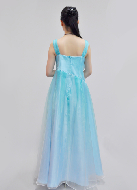 ・グラデーションオガンージーの美しさが際立つシンプルなスレンダードレス ・前襟可愛い波形 ・太さのあるウエストの斜め切替でシルエットを綺麗にみせてくれます ・スムーズに着脱できる様背中にファスナーがあります ・