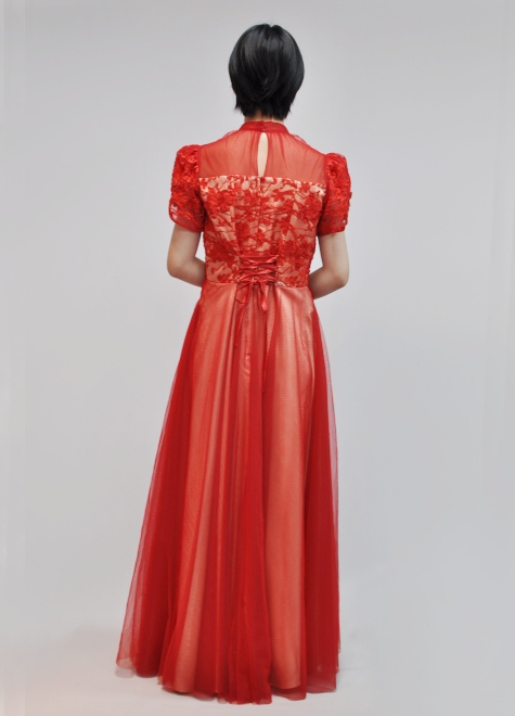 ・立体的な赤レース生地、スカート部分ソフトチュール