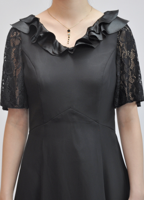 ドレス専門店。黒の演奏会ドレス、ステージドレス小柄サイズな方向け、演奏会用大きいサイズドレス、袖ありロングドレスも。
