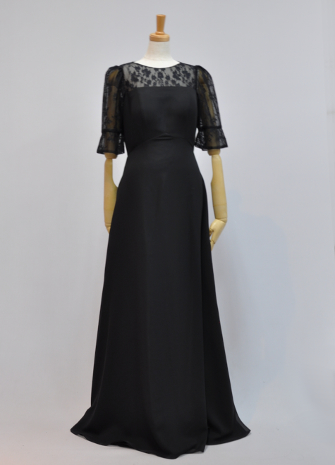 【セミオーダー】袖あり黒ロングドレスs1777-bk