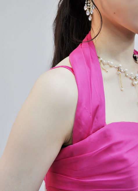 ホルターネックはボタンで留められるので、一人でも形を保ったまま綺麗に着ることが出来ます。