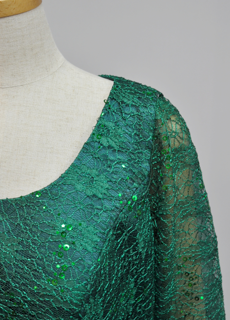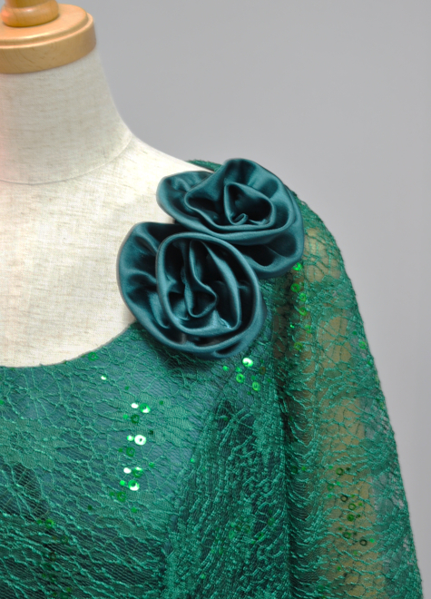 ・生地スバンコールモスグリーンレース ・2個取り外し可能コーサジュ付き ・肘隠れる袖のながさ ・スムーズに着脱できる様背中にファスナーがあります