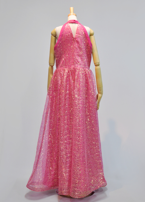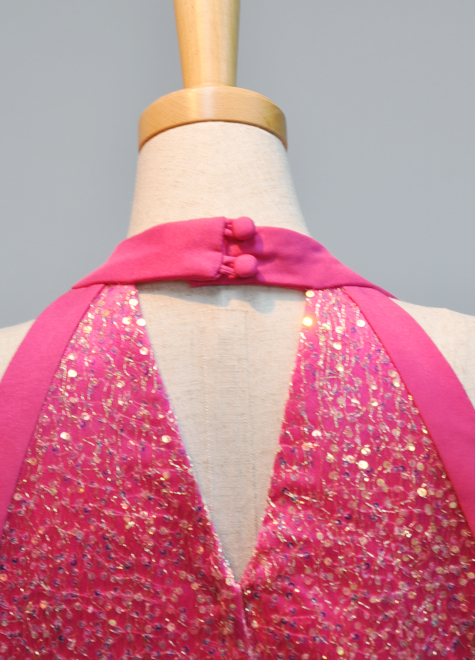 ・生地は輝きやツヤ感を出すためにスパンコール用の糸を編み込んでいるので、スパンコール落ちの心配もなく照明や見る角度によって美しい輝きステージ映えするデザイン