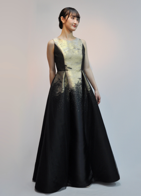 ・色はゴルード×黒のグラデーションAラインドレス
