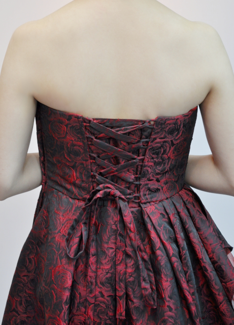 ゴージャスでアシンメトリーのデザインが目を引く一着。